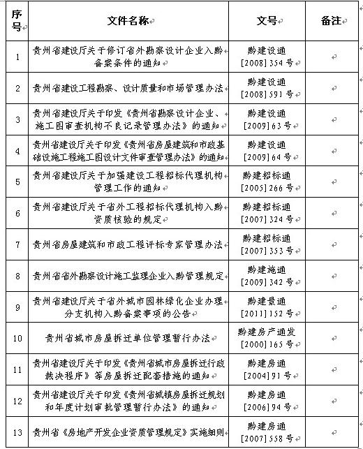 貴州省住房和城鄉(xiāng)建設(shè)廳廢止的規(guī)范性文件目錄《轉(zhuǎn)發(fā)》